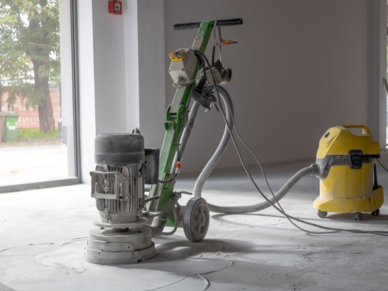 - Specialized grinders are used to grind concrete, removing any contaminants in the process.